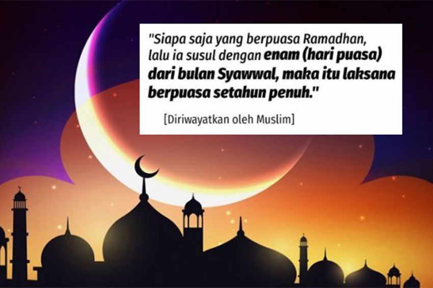 Artinya: “Barang siapa yang telah berpuasa Ramadhan kemudian ia melanjutkannya dengan puasa enam Syawal, niscaya ia seperti puasa satu tahun.” (HR Muslim)