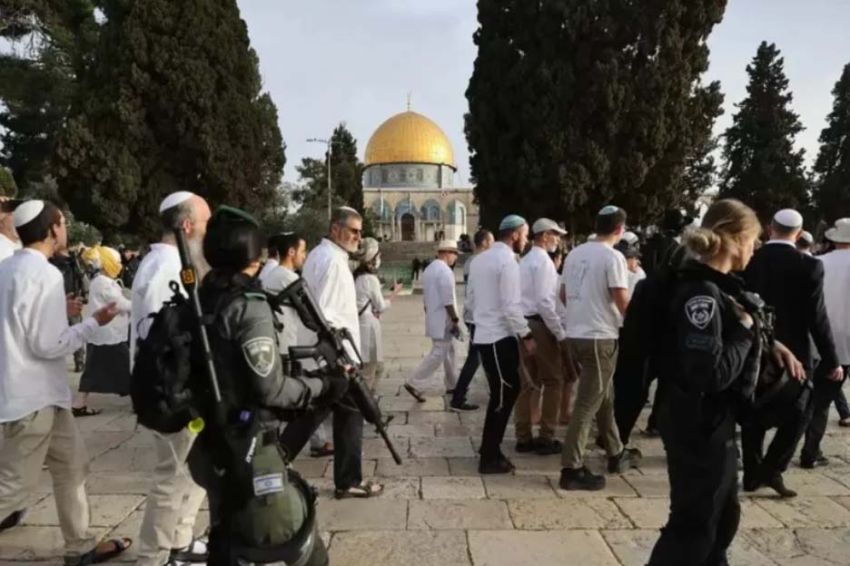 Pemukim Yahudi Israel memaksa masuk ke kompleks Masjid Al-Aqsa di Yerusalem Timur dikawal polisi Israel beberapa waktu lalu. Foto/Anadolu